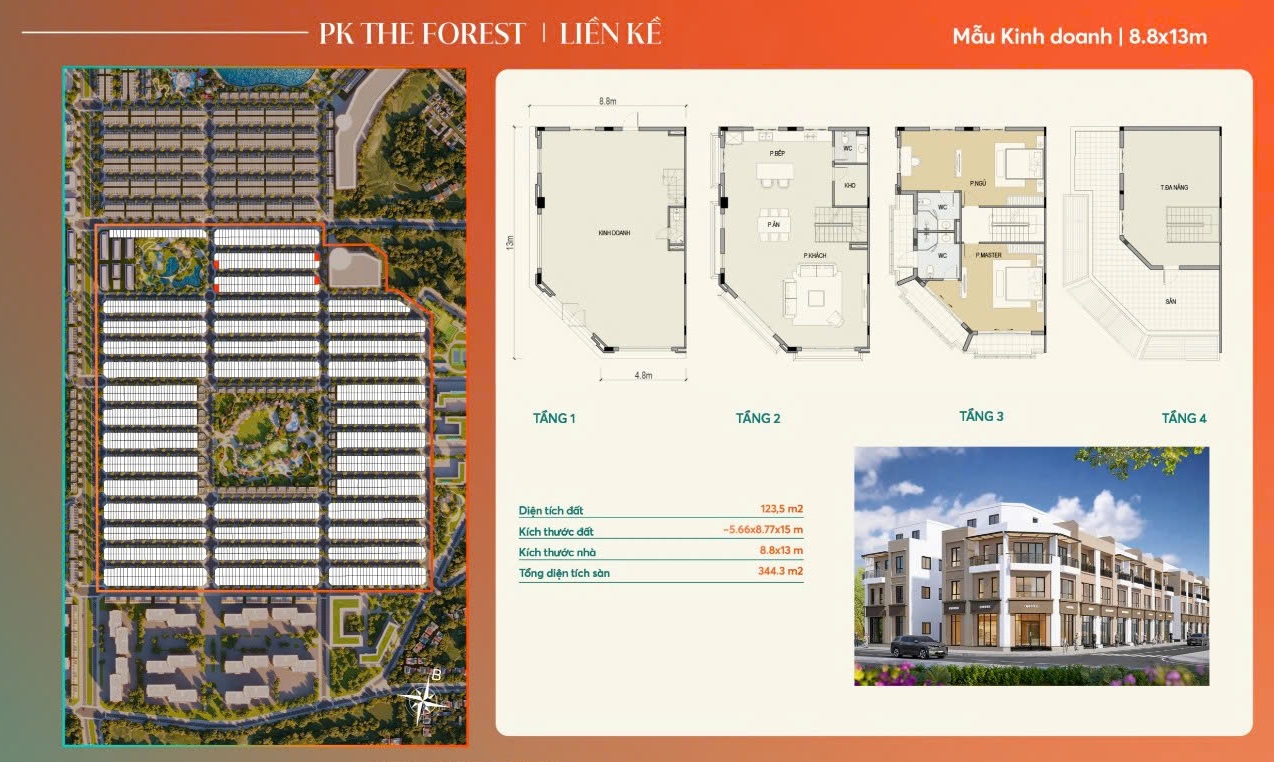 Giai đoạn 1, dự án mở bán shophouse tại phân khu The Forest và The Sunrise với những đặc điểm như sau.