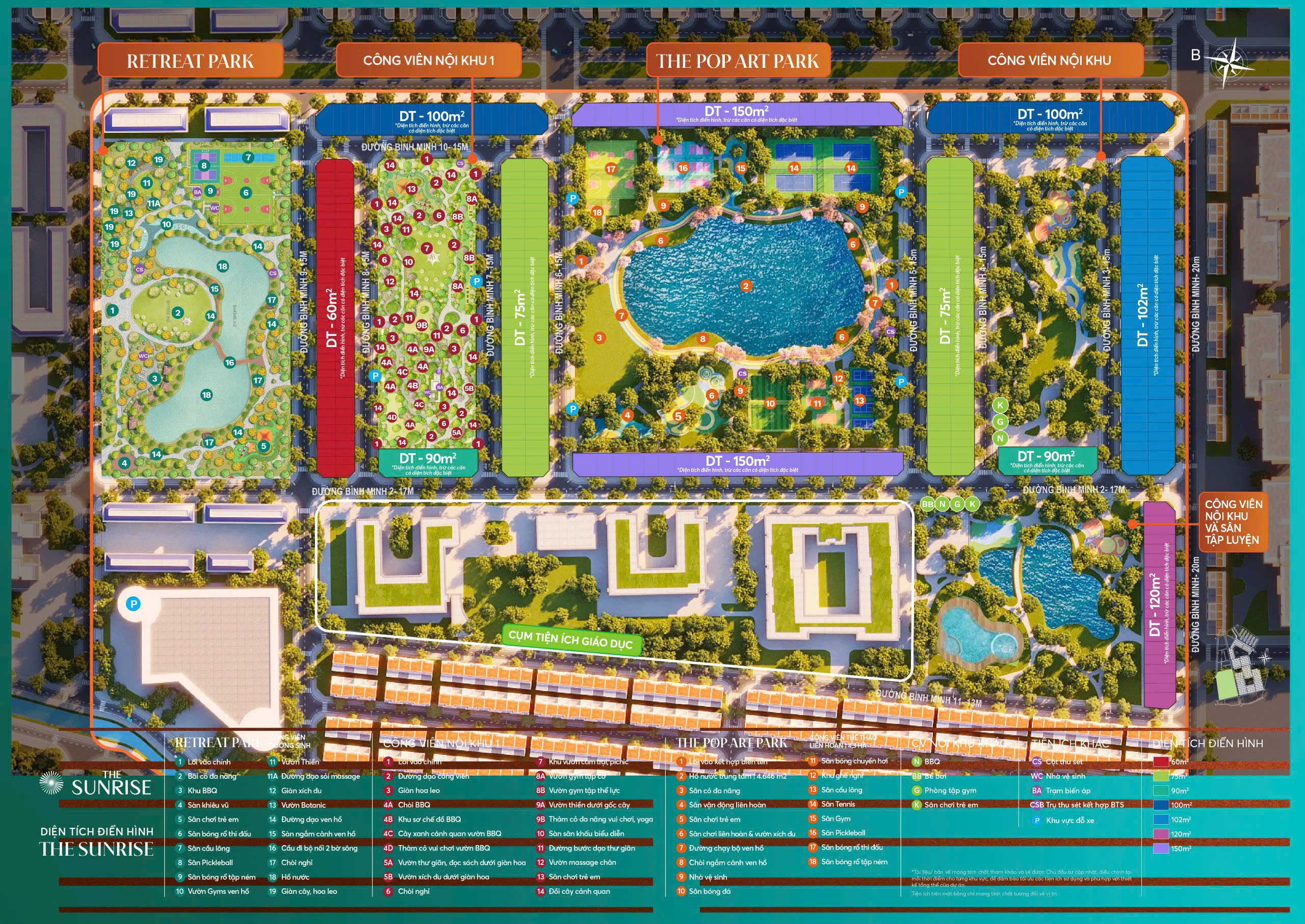 • 122 tổ hợp các tiện ích như: sân bóng đá, sân bóng rổ, hồ bơi, gym, kidzone, BBQ, Sân pickleball.