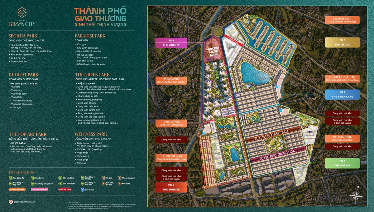 Khu đô thị Vinhome Green City được quy hoạch đồng bộ trên tổng quy mô lên đến 197.2ha với 05 phân khu riêng biệt, tổng cộng 4.572 công trình nhà ở, kiến tạo một cộng đồng văn minh, chuẩn mực. Mỗi phân khu mang một bản sắc riêng, được thiết kế phù hợp với phong cách sống và nhu cầu đa dạng của từng nhóm cư dân.