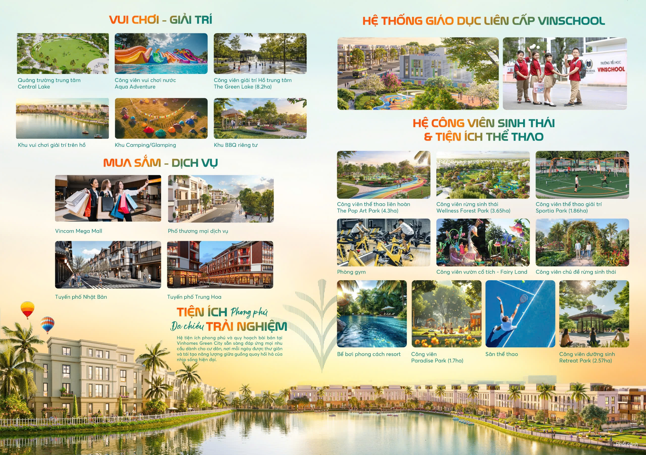 Các nhóm tiện ích cao cấp tại dự án Vinhome Green City bao gồm: