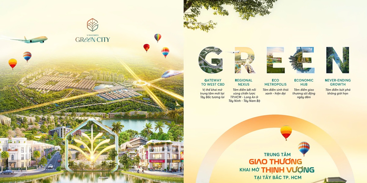 Vinhome Green City là dự án khu đô thị đẳng cấp do Tập đoàn VINHOME phát triển thông qua Công ty CP Phát triển Thành Phố Xanh. Tọa lạc tại cửa ngõ Tây Bắc TP. Hồ Chí Minh, dự án không chỉ mang đến không gian sống xanh hiện đại mà còn là điểm nhấn kinh tế với tổ hợp triển lãm quốc tế quy mô hàng đầu châu Á.